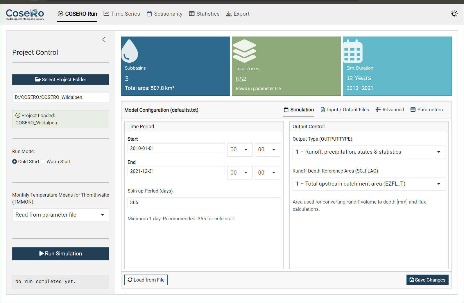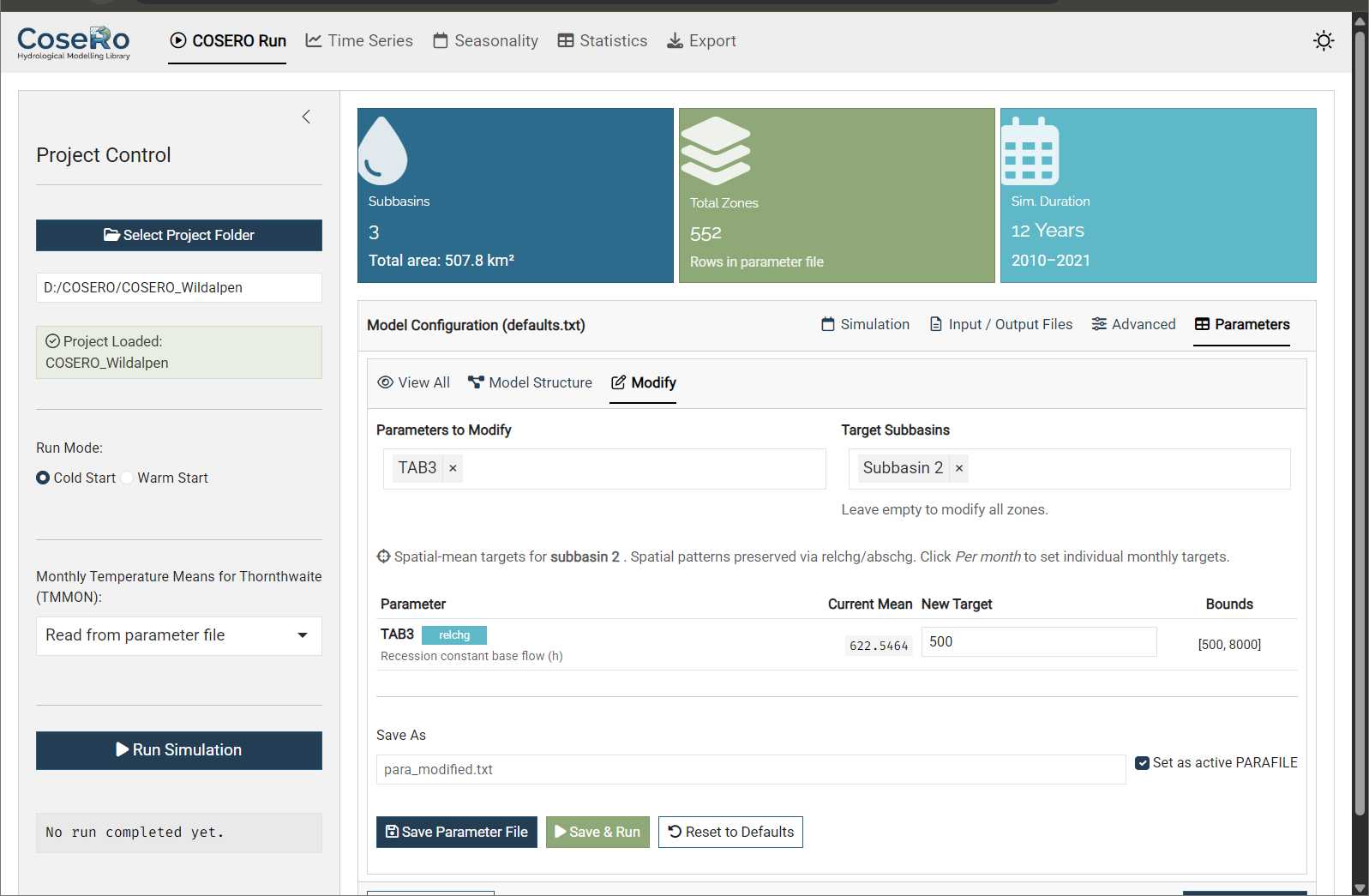 Tab 1: COSERO Run