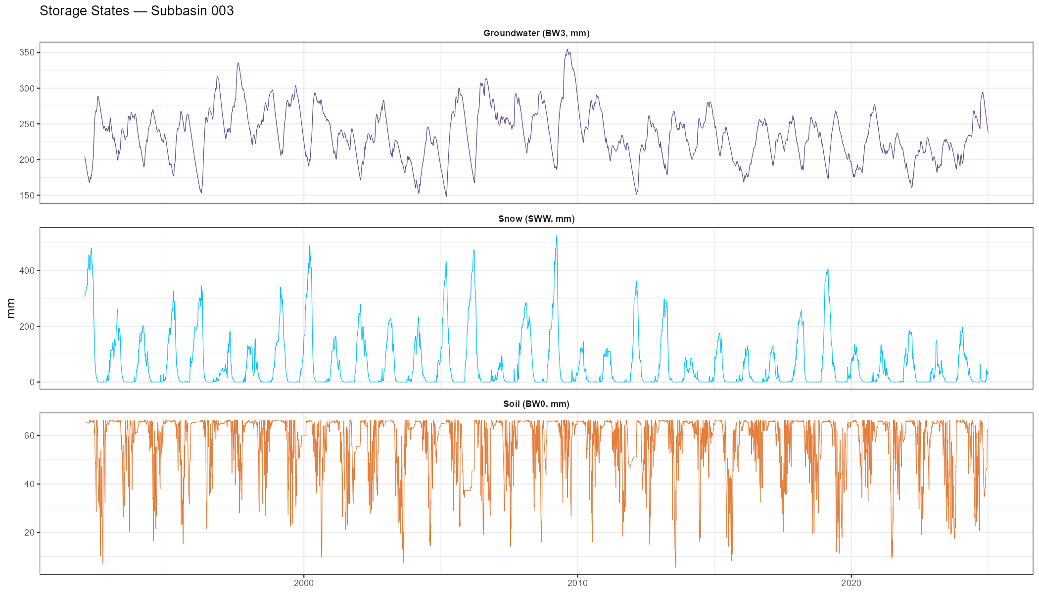 - No explicit karst or deep groundwater: Subsurface losses to karst systems or interbasin groundwater transfers are not represented — a systematic dry bias in spring-dominated catchments is a likely symptom.